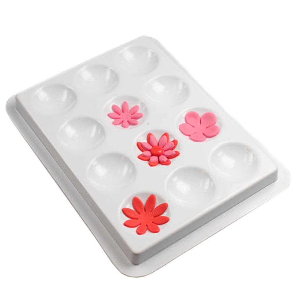 Estructura con 12 cavidades cóncavas semicirculares para dejar secar hojas y flores de pasta de azúcar o royal icing. Con esta herramienta conseguirás un resultado más realista para las decoraciones.
