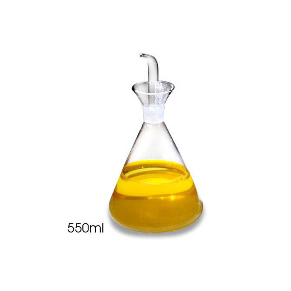 La aceitera de cristal tiene un caño de vertido que garantiza un flujo estable y preciso, la ranura en la base recoge las gotas de aceite y las devuelve al interior manteniendo el recipiente limpio, su boca ancha y acampanada sirve de embudo para rellenar el recipiente y recoge las gotas para evitar incómodas manchas en el mantel, cocina, etc.