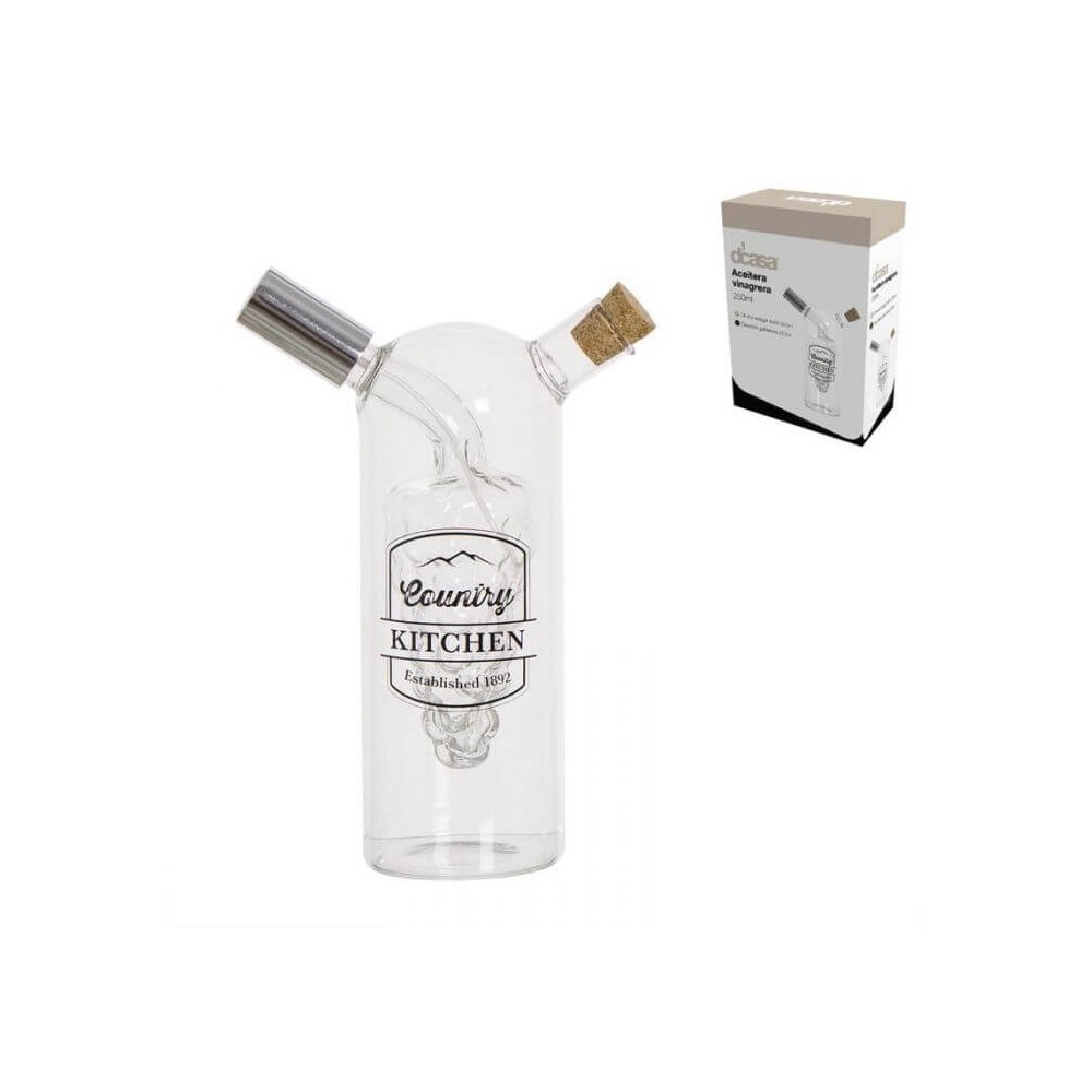 Esta aceitera antigoteo es el complemento perfecto para aliñar ensaladas, podrá almacenar dos líquidos diferentes en el mismo recipiente sin mezclarse y ahorrando espacio. Las boquillas de vertido separadas garantizan que no se contamine ni el aceite ni el vinagre, su sistema biselado evita el contraflujo del líquido manteniendo la botella limpia y su diseño en cristal transparente permite ver fácilmente el contenido restante.