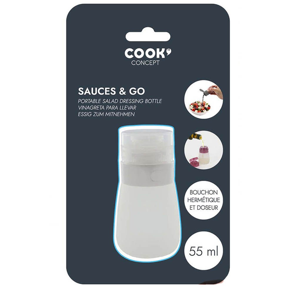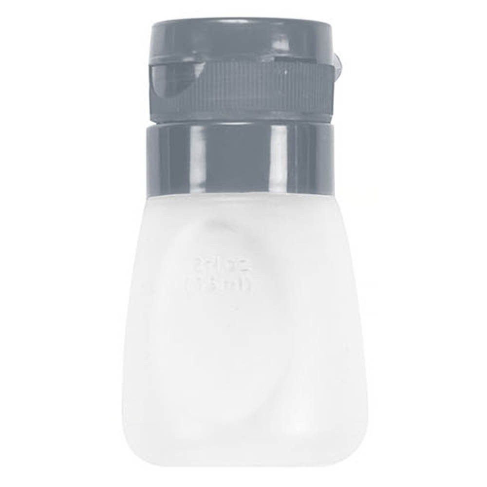 Recipiente de plástico de 55 ml de capacidad con tapón hermético, ideal para transportar aliños y salsas dentro de la bolsa térmica sin miedo a posibles derrames.