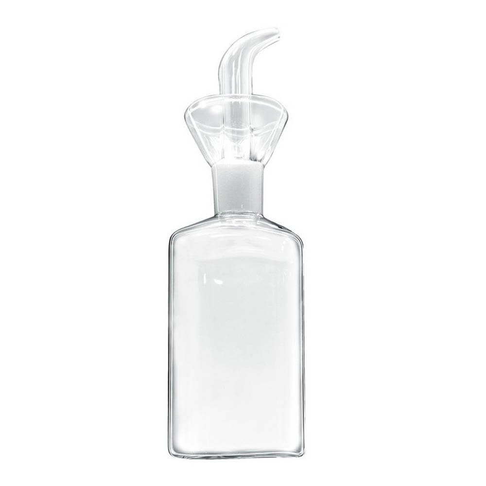 La aceitera de cristal tiene un caño de vertido que garantiza un flujo estable y preciso, la ranura en la base recoge las gotas de aceite y las devuelve al interior manteniendo el recipiente limpio. Su boca ancha y acampanada sirve de embudo para rellenar el recipiente y recoge las gotas para evitar incómodas manchas en el mantel, cocina, etc.