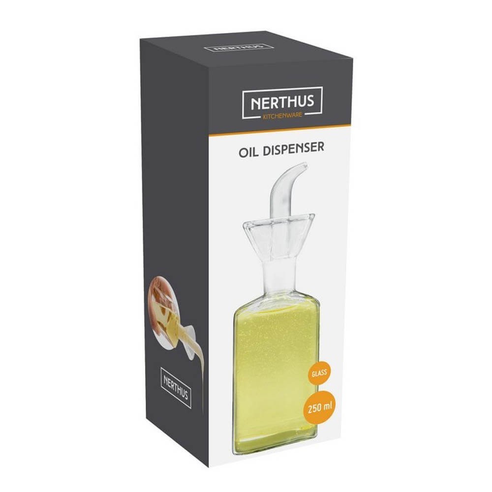 Con esta práctica aceitera antigoteo en cristal transparente con 250 ml capacidad podrás aderezar tus recetas sin ensuciar la mesa y el mantel.