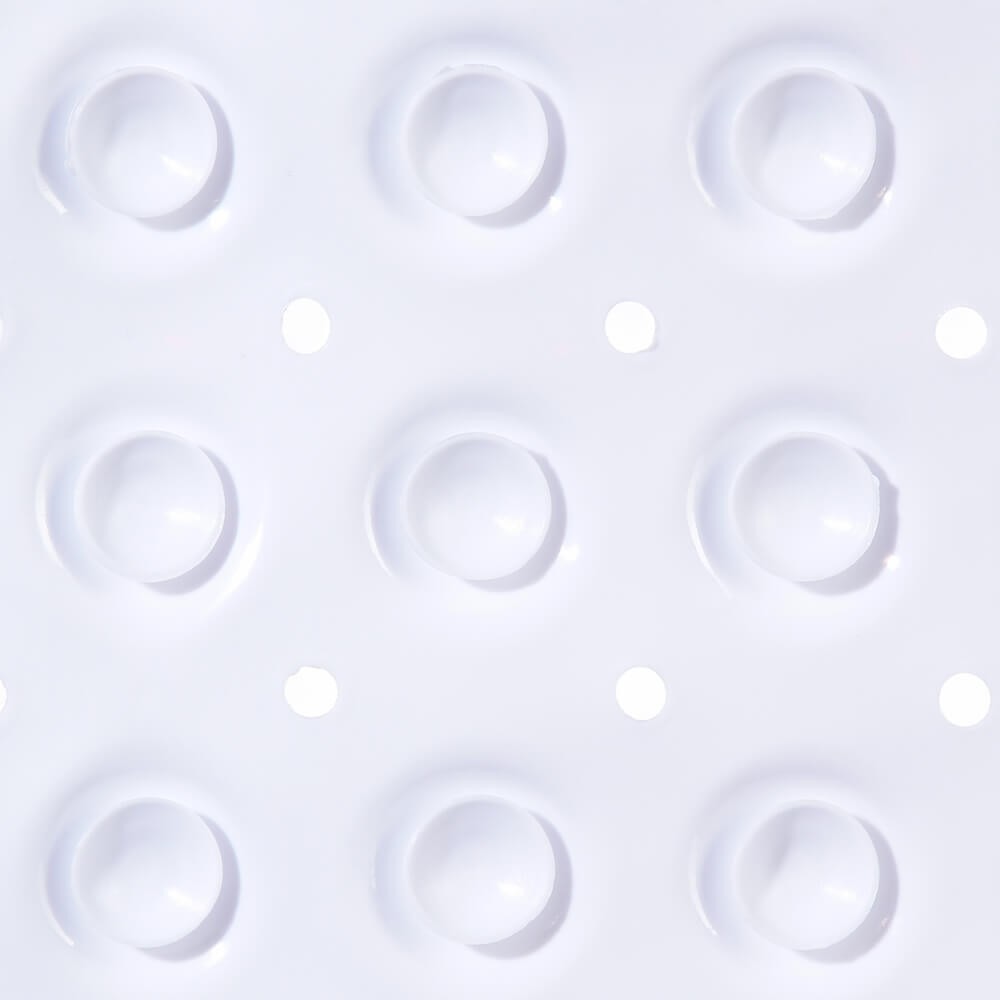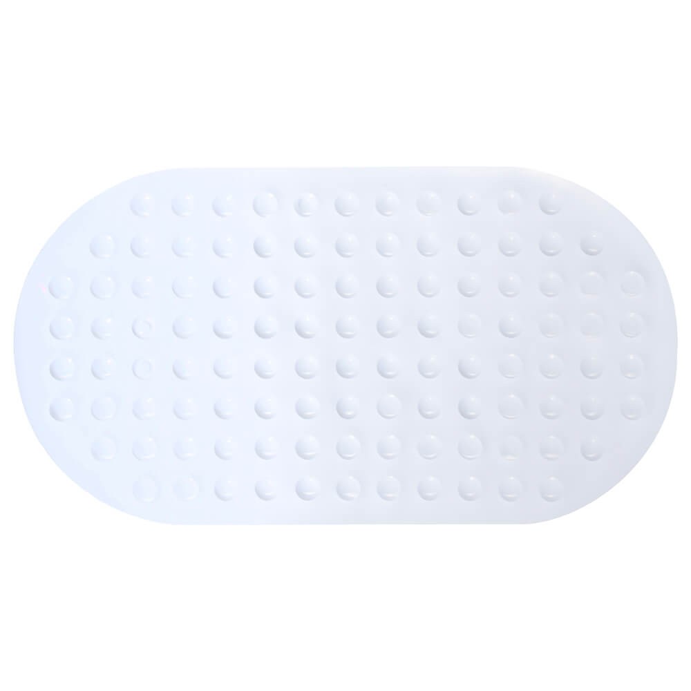 Alfombrilla de baño con ventosas potentes que se adhieren a la bañera para prevenir resbalones y caídas, cuenta con varios orificios de drenaje para que el agua no se acumule. La alfombra para bañera de 68x37 cm en formato ovalado esta fabricada en PVC de alta calidad en color blanco, suave y duradera. Una alfombra con antideslizantes con gran poder de adherencia gracias al número de ventosas, no se mueve.
