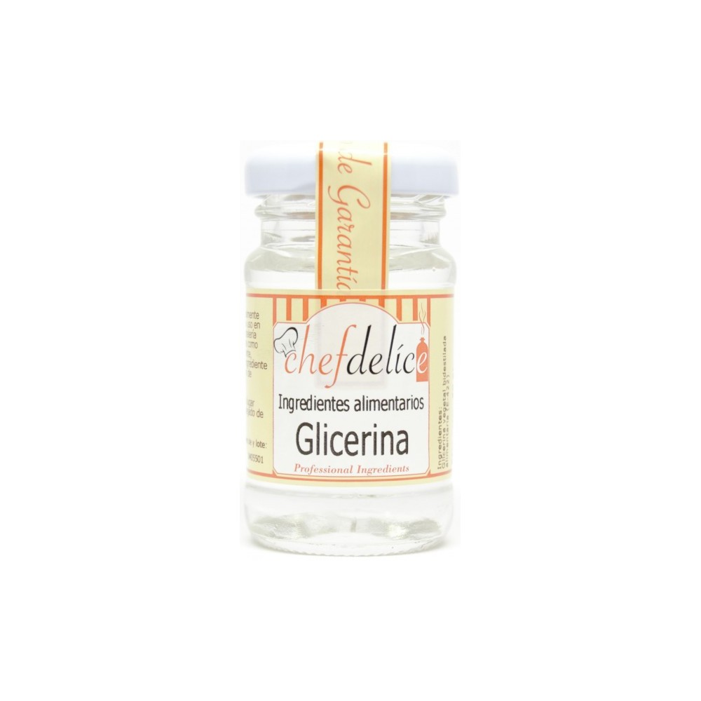 Descubre la glicerina vegetal bidestilada de uso alimentario de Chefdelice, ideal para tus elaboraciones de repostería creativa. Presentada en un práctico envase de 60 gramos, esta glicerina comestible es perfecta para preparar glasa real (royal icing) más flexible, suavizar fondant endurecido, o incluso para elaborar tu propio fondant casero.