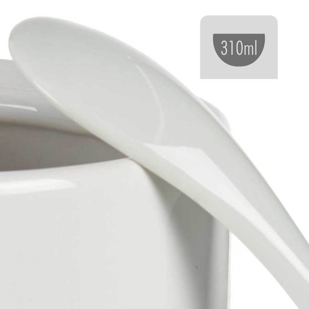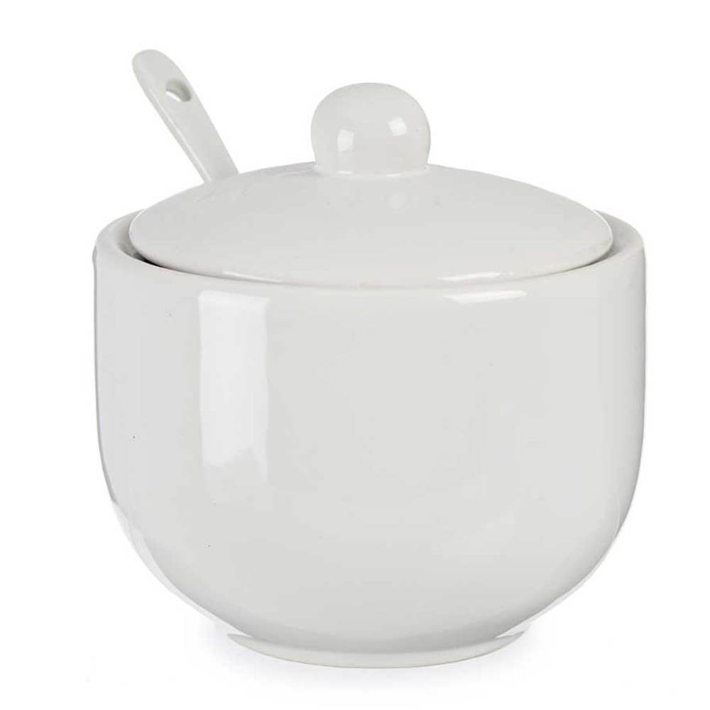 Azucarero de mesa con tapa extraíble y cucharilla realizado en cerámica blanca, destaca por su forma y su diseño sencillo que podrás acoplar fácilmente en tu cocina.