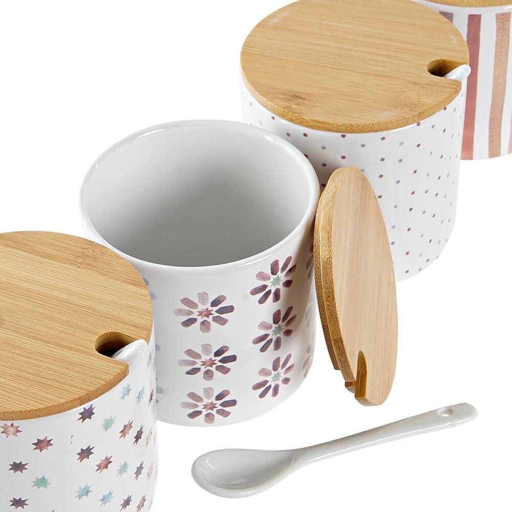 Con 4 decorados diferentes, flores, puntos, rayas o estrellas, el azucarero moderno encaja a la perfección en cualquier estilo y aportará un toque de color y alegría a tu mesa.