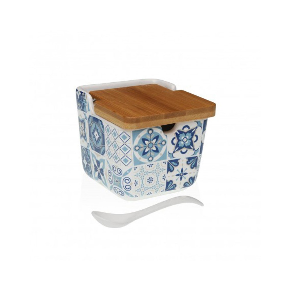 AZUCARERO AZUL AZULEJOS TAPA BAMBU 8.8X8.8X8.5