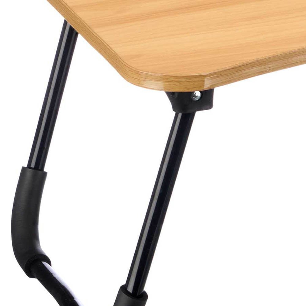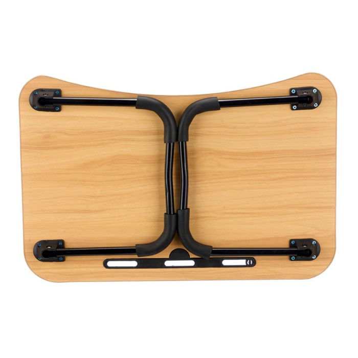 Bandeja de cama con superficie de madera MDF y patas plegables de metal negro. Abierto: 60 x 40 x 26 cm. Cerrado: 40 x 60 x 4,6 cm.