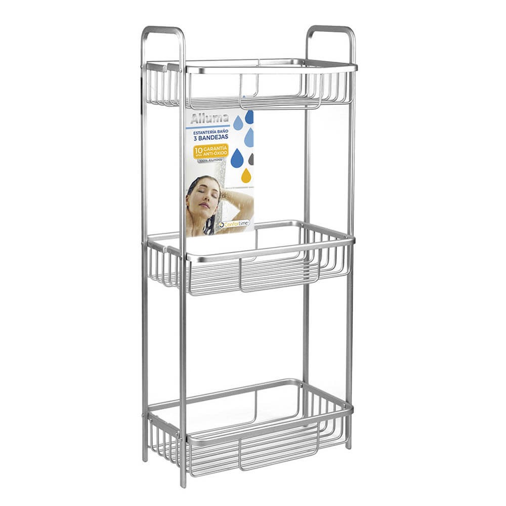 Estantería de baño auxiliar fabricada en aluminio resistente al oxido con 3 estantes.