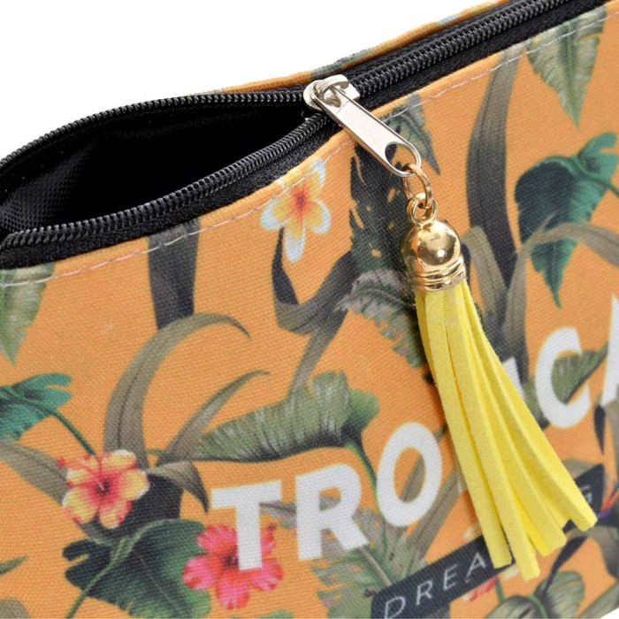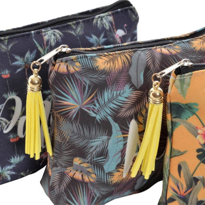 Neceser de tela diseño tropical disponible en 3 decorados.