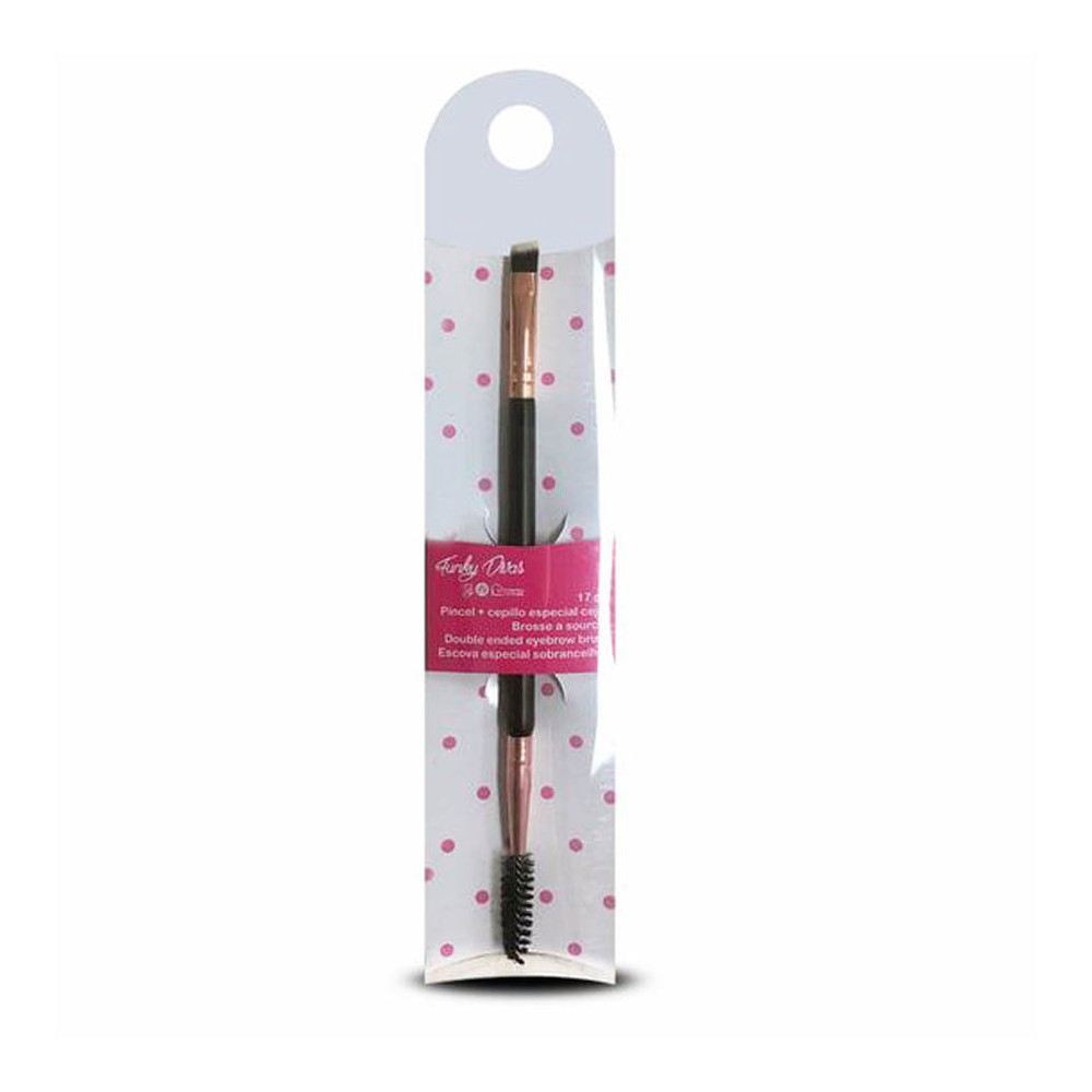 Pincel con dos cabezales, uno con un cepillo para peinar las cejas y el otro con un pincel pequeño con el cabezal biselado para ojos, perfecto para aplicar sombras e iluminar bajo el arco de la ceja o en el lagrimal.