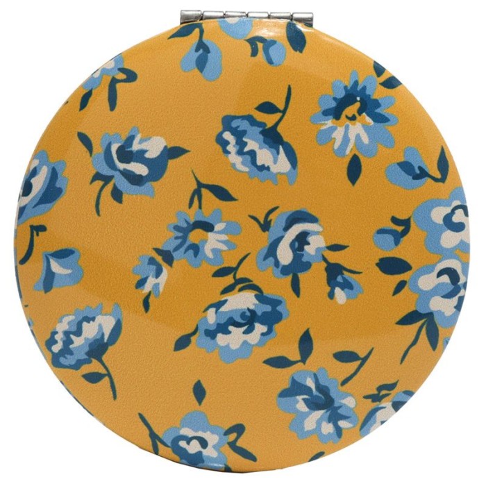 Espejo de bolso con doble cara forrado en polipiel estampada. 4 diseños florales.