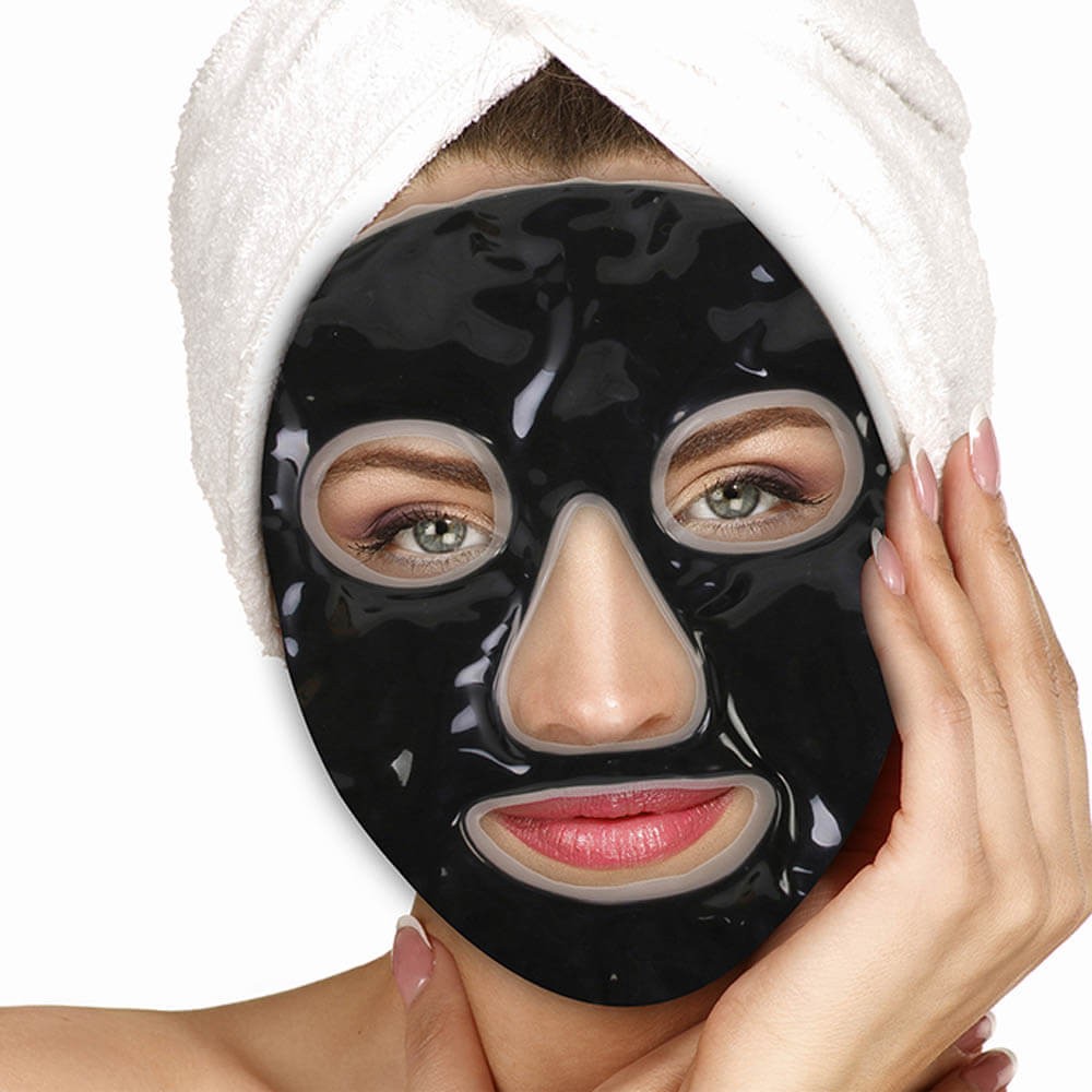 Mascara facial de arcilla negra con cintas de velcro ajustables a los diferentes tamaños de cabeza, perfecta para relajar el rostro después de un día de trabajo. Calma, cierra los poros y refresca el rostro para una piel más suave.