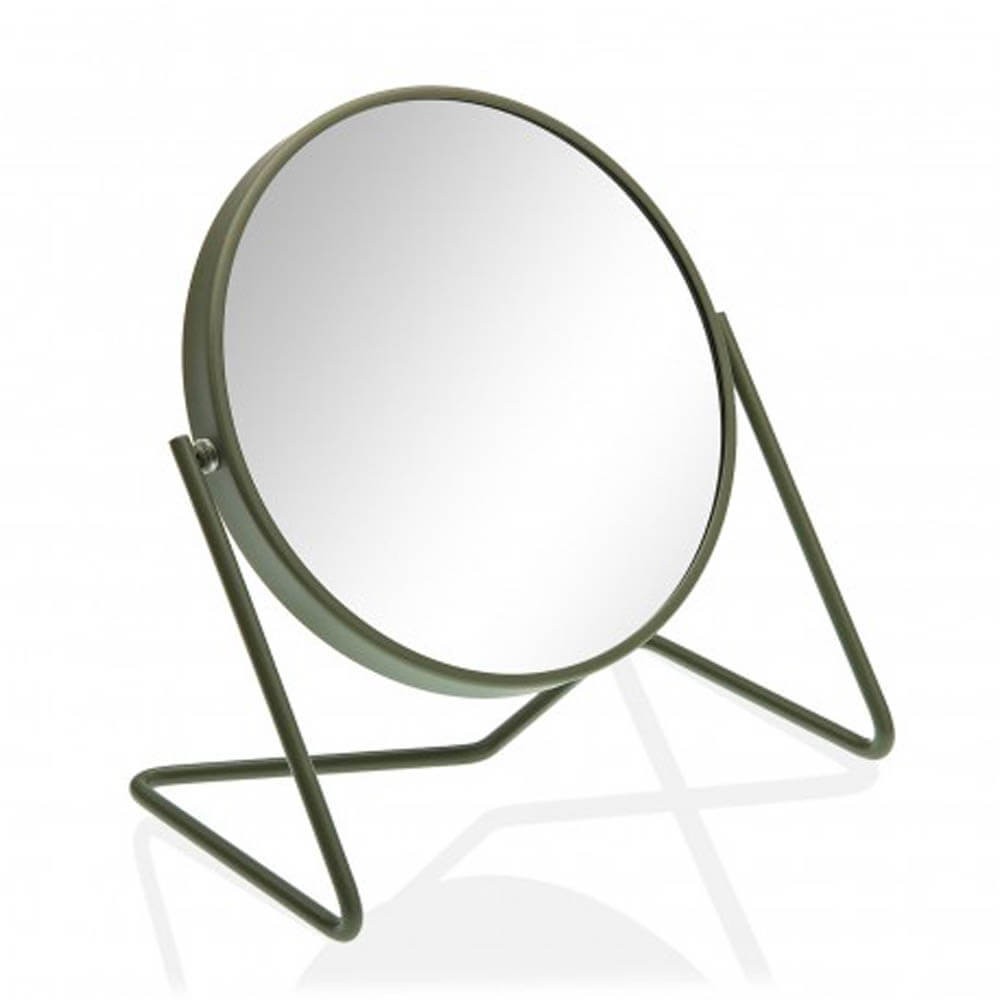Espejo de aumento para colocar en la encimera realizado en hierro con un diseño ligero y moderno en color verde, lleva marco redondo con sistema pivotante sobre una base tubular.