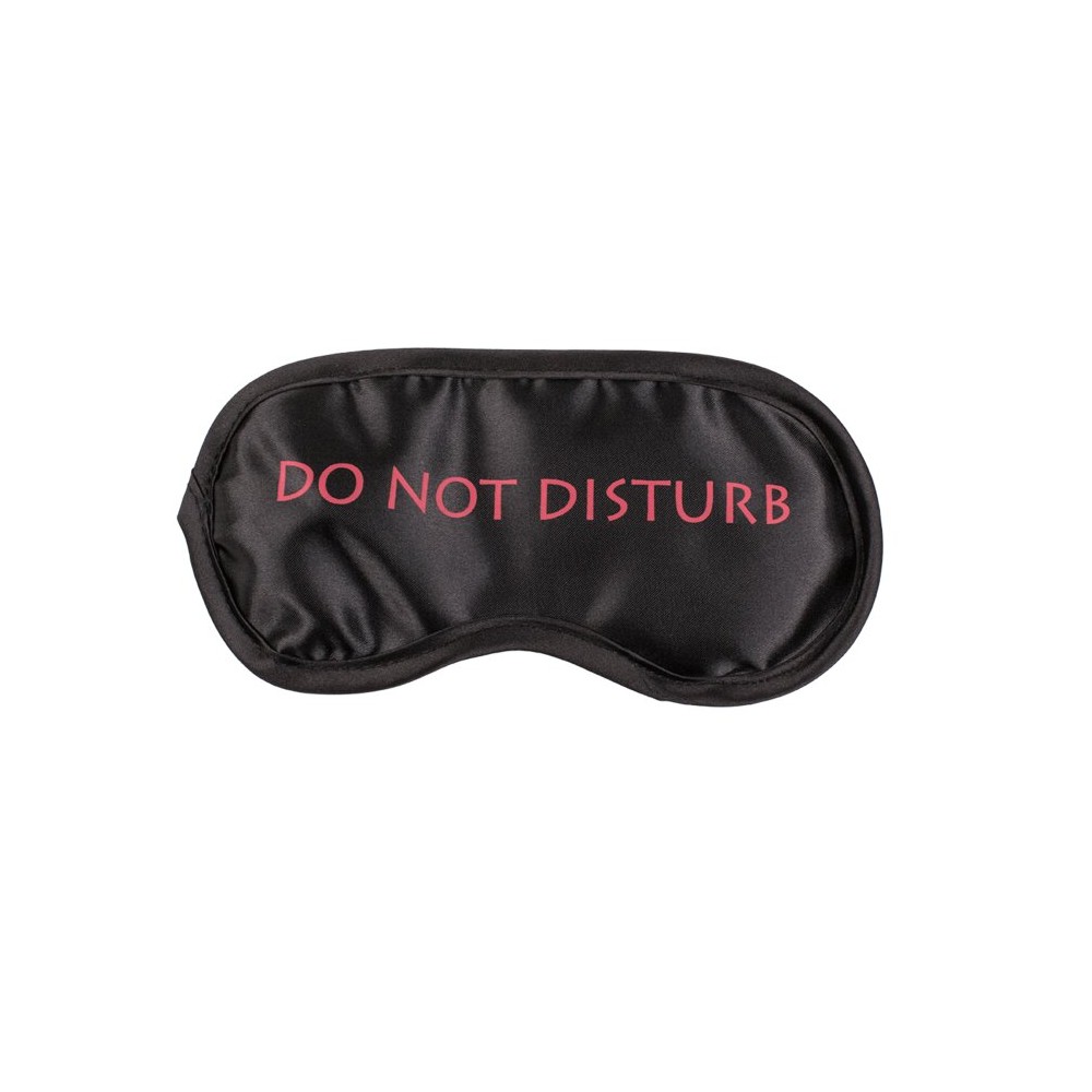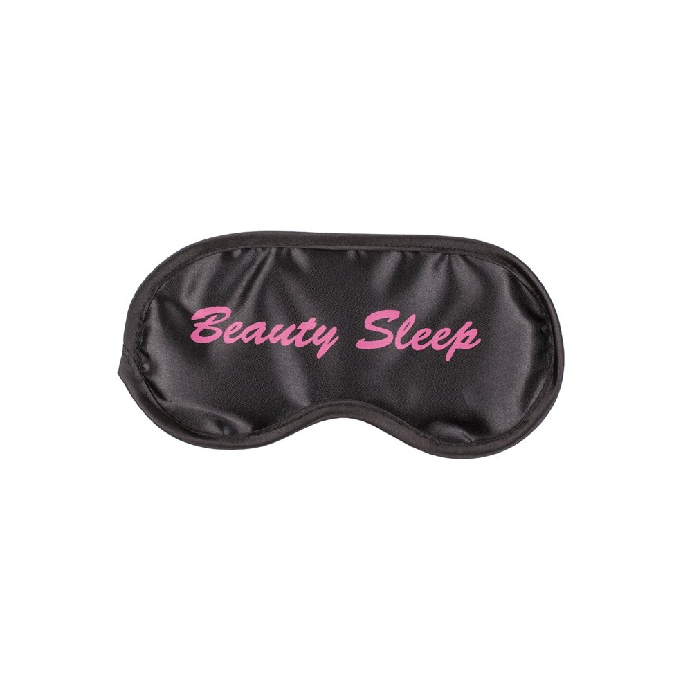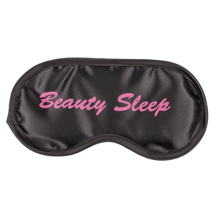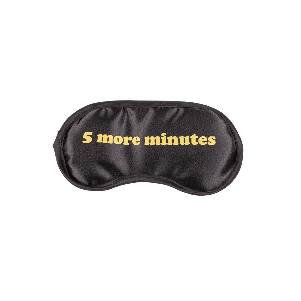 Antifaz suave de poliéster con frase en inglés. Bloquea la luz para un sueño reparador. Ajuste cómodo con goma elástica.