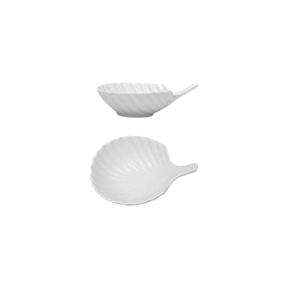 Vacía bolsillos blanco de cerámica gres con el borde ondulado y la superficie grabada.