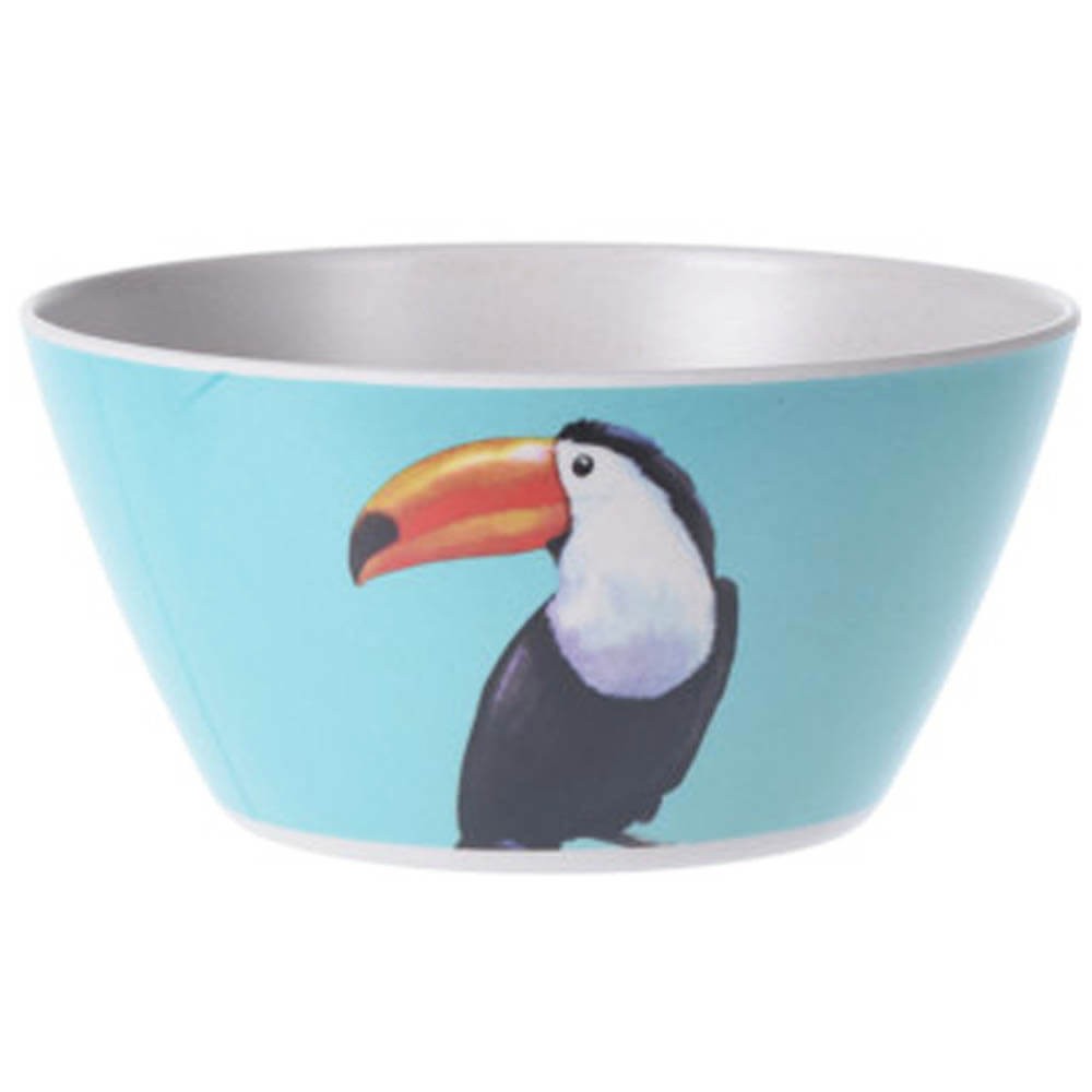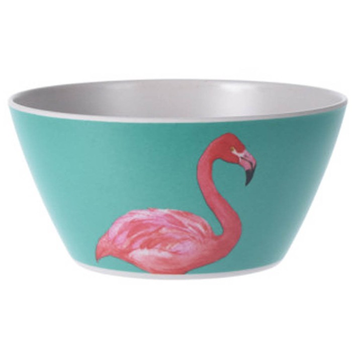 Bol de bambú y melamina diseño aves tropicales, Tucan, Flamenco, Colibrí o Loro.