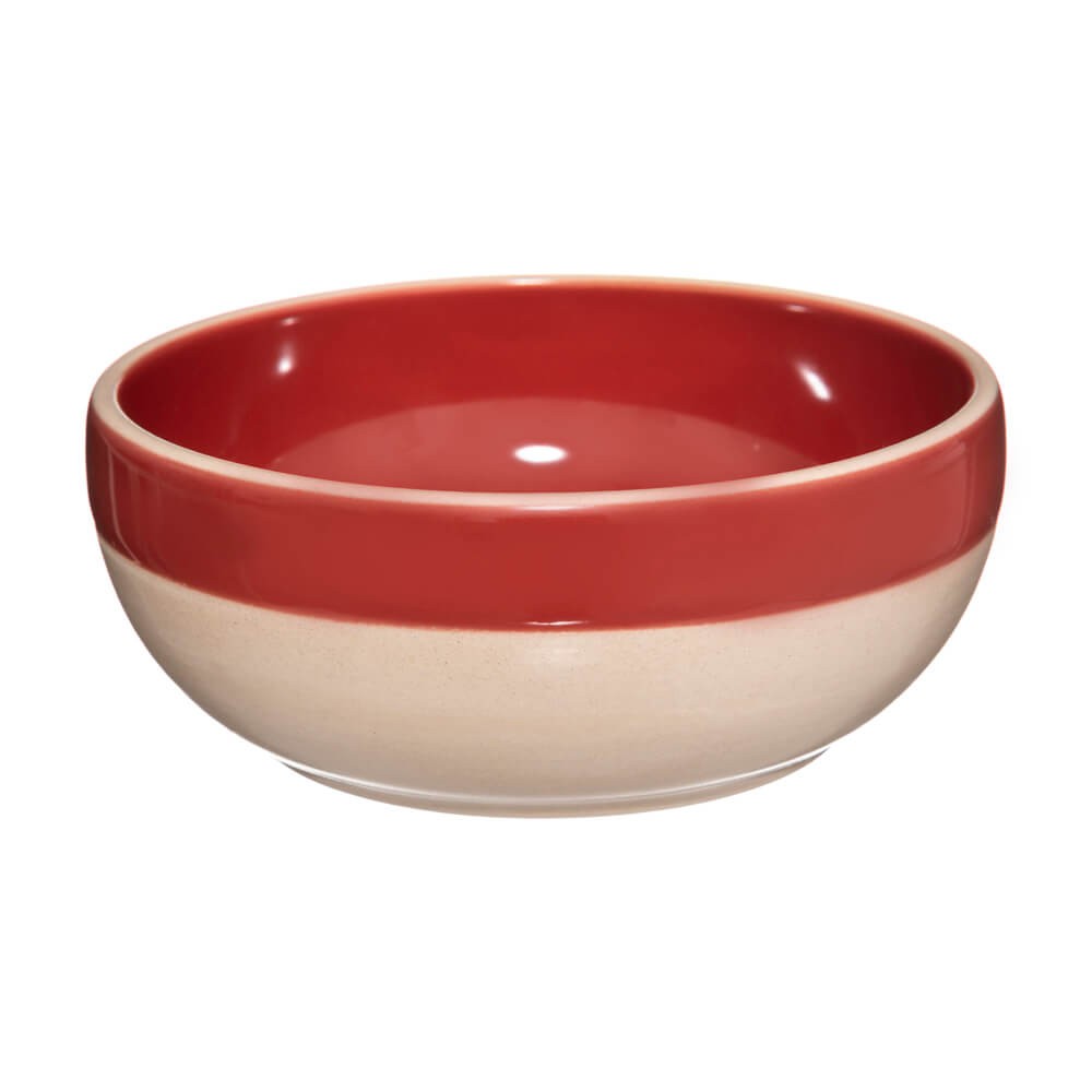 Cuenco de cerámica con el interior y parte del exterior esmaltado en color coral, apto para entrar en contacto con alimentos. Un bowl ideal para servir aperitivos en la mesa o como bowl de desayuno.