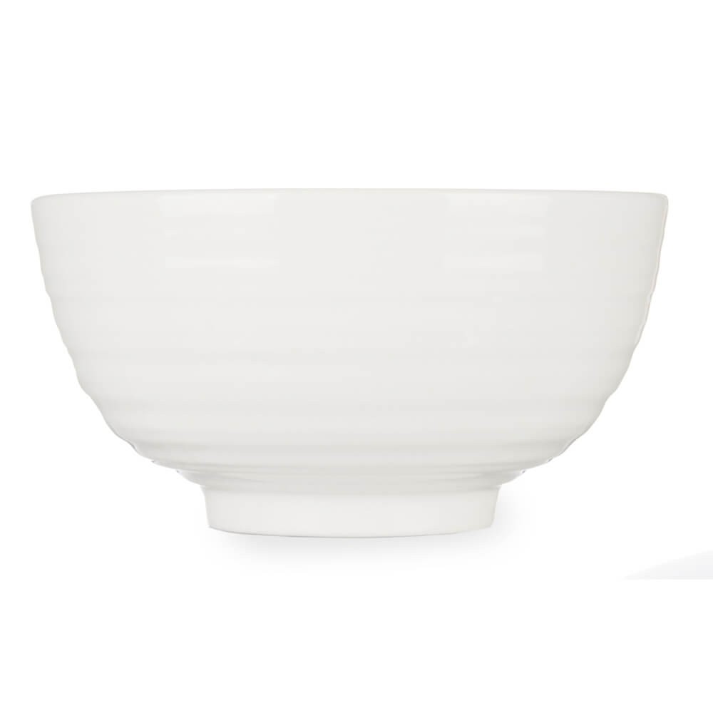 Bol blanco de porcelana con un 1 litro de capacidad, ideal para ensaladas y aperitivos. Interior liso, exterior estriado. Apto para microondas y lavavajillas. 16 x 16 x 8 cm