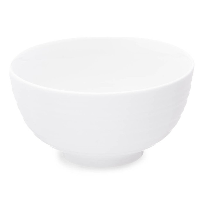 El diseño del bol de porcelana es tanto práctico como estético. El interior liso facilita la limpieza y el servicio de los alimentos, mientras que el exterior estriado, con líneas horizontales en relieve, añade un toque de sofisticación y textura a la pieza. Este contraste entre el interior liso y el exterior estriado no solo mejora su apariencia, sino que también proporciona un agarre cómodo y seguro.