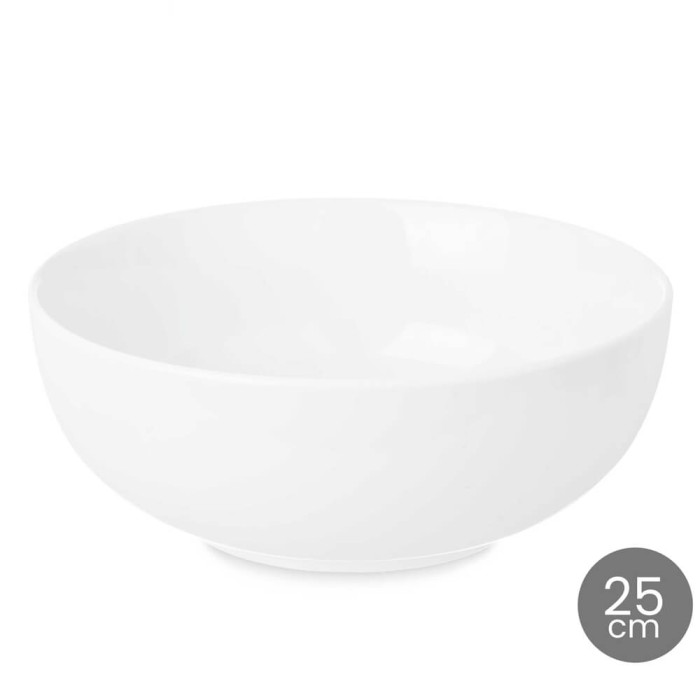 Ensaladera blanca realizada en porcelana con 2500ml, ideal para presentar ensaladas, pastas y guisos. Apta para microondas y lavavajillas.