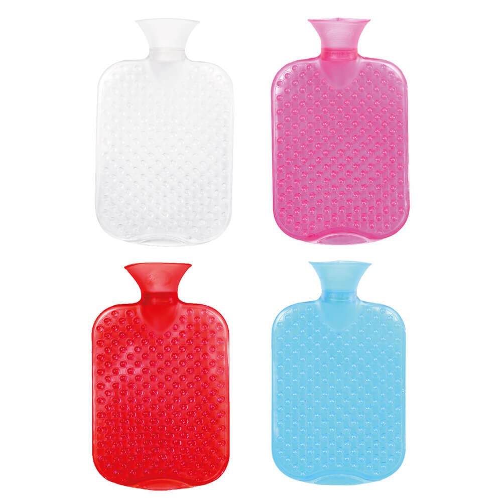 Bolsa de agua caliente con 2 litros de capacidad realizada en PVC resistente de color azul, blanco, rojo o rosa. Una bolsa segura y fácil de utilizar con tapón de rosca para evitar fugas.