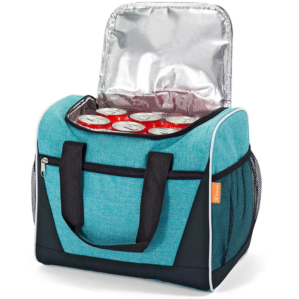 Bolsa térmica porta alimentos con 19 litros de capacidad, confeccionada en tejido resistente de poliéster en color azul claro, verde, granate o azul oscuro con el interior termoinsulado, muy práctica para transportar la comida y bebida fuera de casa manteniéndola fresca durante más tiempo.