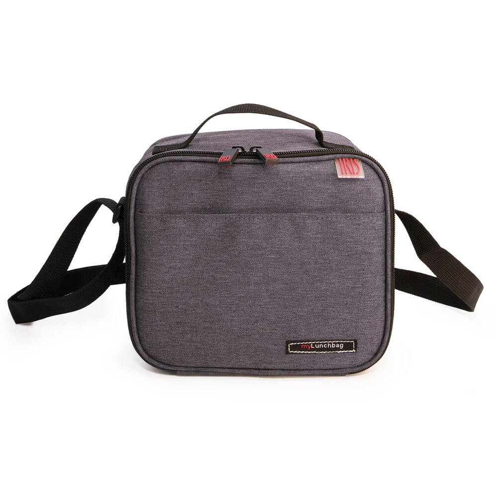 Bolsa térmica gris de la marca Iris con el interior termoinsulado para proteger la comida y mantener los alimentos frescos durante el transporte, incluye dos contenedores de 0,6 litros. Los tuppers están libres de BPA y son 100% herméticos, aptos para el lavavajillas y microondas.