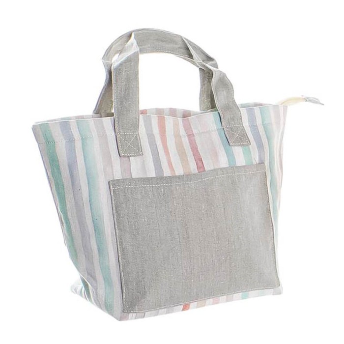 Esta bolsa refrigerante esta disponible en 4 decorados, flores, rayas, puntos o estrellas en color gris, marrón, turquesa o azul.