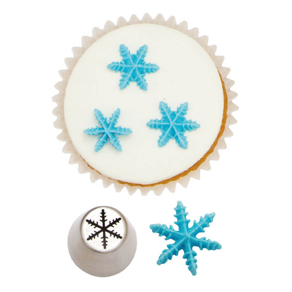 Ideal para cualquier repostero que desee agregar un toque festivo a sus creaciones, la boquilla rusa es perfecta para realizar copos de nieve directamente sobre tartas, magdalenas, cupcakes y demás dulces. Con solo un movimiento de la manga pastelera, podrás elaborar copos de nieve detallados y precisos, haciendo que la decoración sea rápida y sin complicaciones. Esta herramienta es perfecta para decoraciones temáticas de Frozen y Navidad, añadiendo un toque mágico a tus postres.