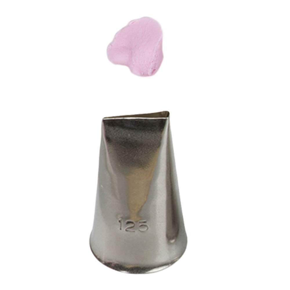 Boquilla Pastelera #125 de acero inoxidable sin puntos de soldadura, resistente y duradera, ideal para crea pétalos realistas, arcos, volantes, drapeados y cortinas impresionantes para cualquier ocasión. Compatible con mangas y adaptadores estándar.