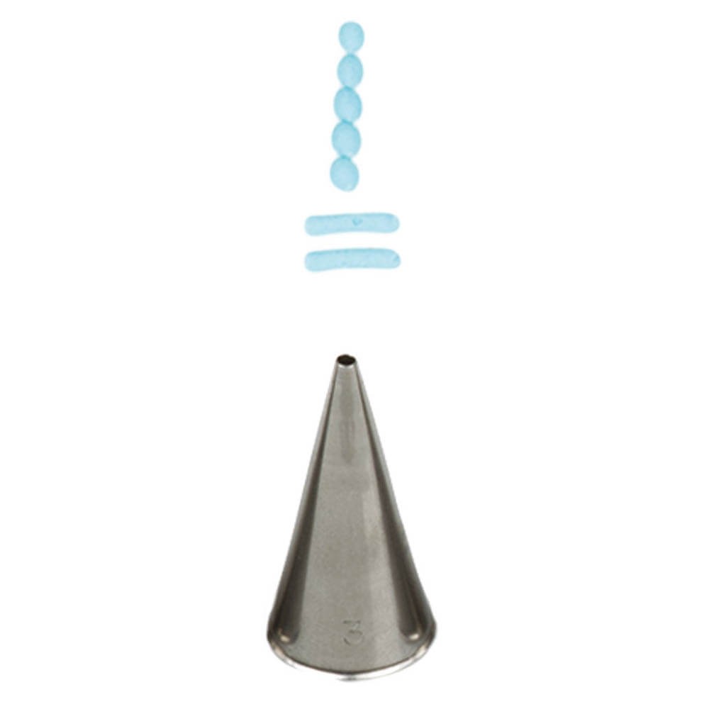 Crea decoraciones profesionales en tus tartas, galletas, cupcakes... con la boquilla nº3 de Decora realizada en acero inoxidable. Ideal para hacer delineados, encajes, enrejados, puntos, letras y textos, es resistente y fácil de usar.
