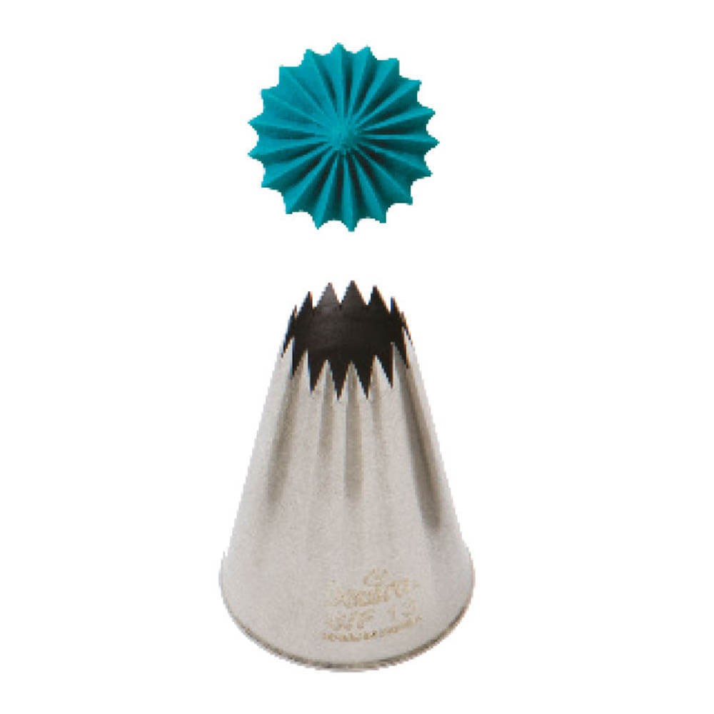 Boquilla 6B realizada en acero inoxidable de una sola pieza, perfecta para realizar estrellas, flores-gota y bordes dentados. Resistente y fácil de usar.