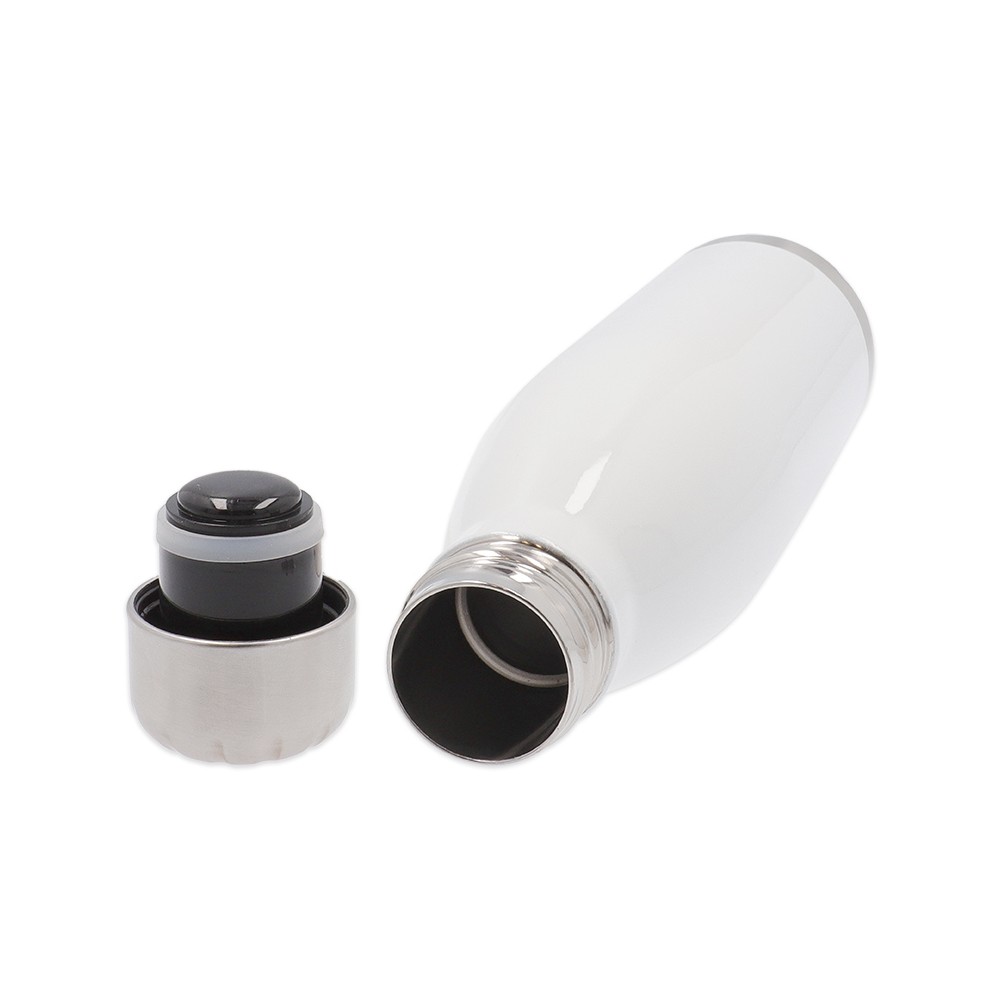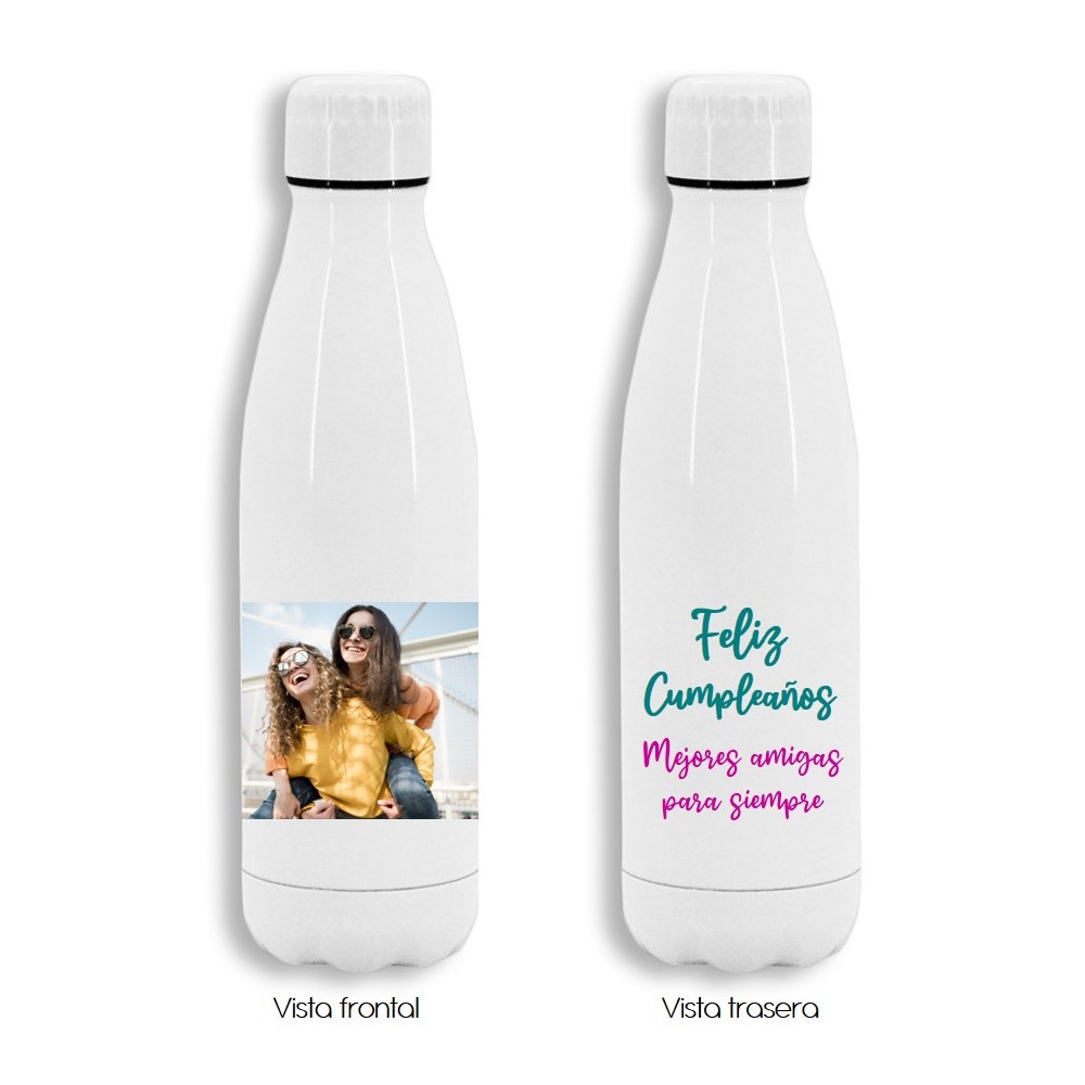 Botella personalizable con 500ml de capacidad realizada en acero inoxidable con tapón de rosca, diseño en color liso blanco para personalizarla con la foto y el nombre de tu hijo, pareja, padre, madre, mejor amigo, profesor, etc.