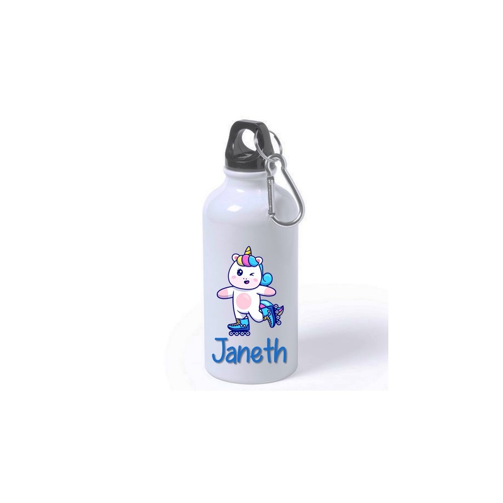Personaliza una botella de aluminiio diseño Unicornio y hazla única y especial añadiendo el nombre de tu hija. Verás la ilusión que le hace recibir un regalo original y personalizado al que sacara muchísimo partido, perfecta para que lleve agua al colegio, parque, piscina, playa, excursiones, etc.