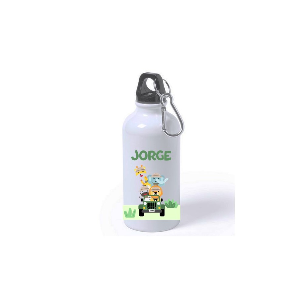 Personaliza una botella de aluminio diseño Animales en coche y hazla única y especial añadiendo el nombre de tu hij@. Verás la ilusión que le hace recibir un regalo original y personalizado al que sacara muchísimo partido, perfecto para que lleve agua al colegio, parque, piscina, playa, excursiones, etc.