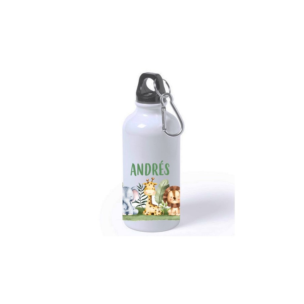 Personaliza una botella de aluminio diseño Jungla y hazla única y especial añadiendo el nombre de tu hij@. Verás la ilusión que le hace recibir un regalo original y personalizado al que sacara muchísimo partido, perfecta para que lleve agua al colegio, parque, piscina, playa, excursiones, etc.