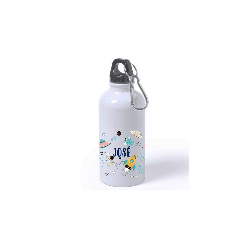 Personaliza una botella de aluminio diseño Espacio y hazla única y especial añadiendo el nombre de tu hij@. Verás la ilusión que le hace recibir un regalo original y personalizado al que sacara muchísimo partido, perfecto para que lleve agua al colegio, parque, piscina, playa, excursiones, etc.
