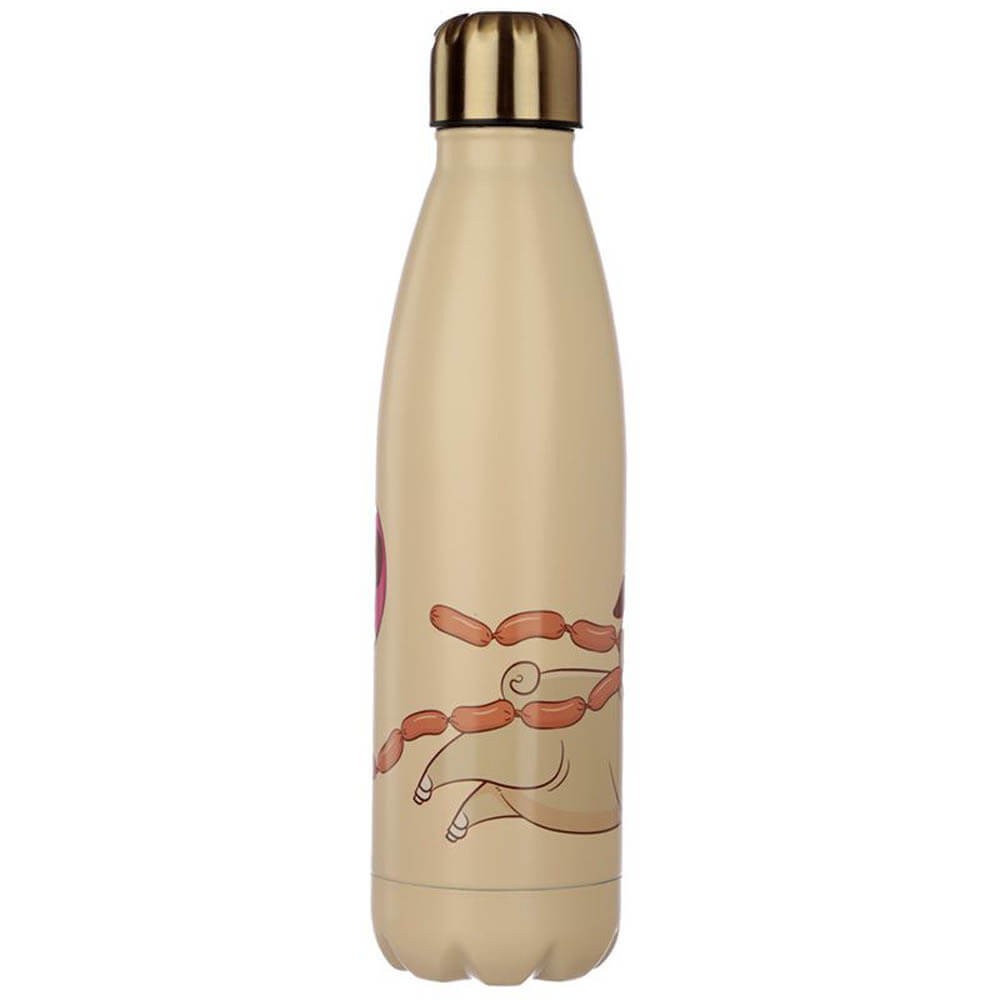 Esta botella térmica con un divertido diseño de un perro Carlino con salchichas es perfecta para que puedas hidratarte en cualquier momento y lugar, el material con el que esta fabricada, Acero inoxidable con doble pared, mantiene la temperatura de las bebidas tanto frías como calientes durante más tiempo, 12 horas en frío o 6 horas en caliente.