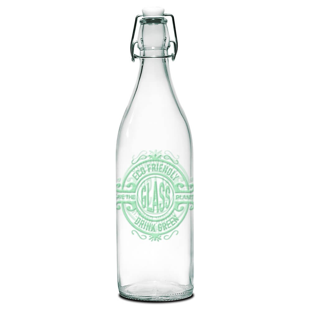 Esta botella de cristal diseño eco friendly con 1 litro de capacidad es perfecta para que tengas siempre agua fría para hidratarte en casa, podrás colocarla en la puerta de la nevera gracias a su formato de 8,6cm de diámetro.