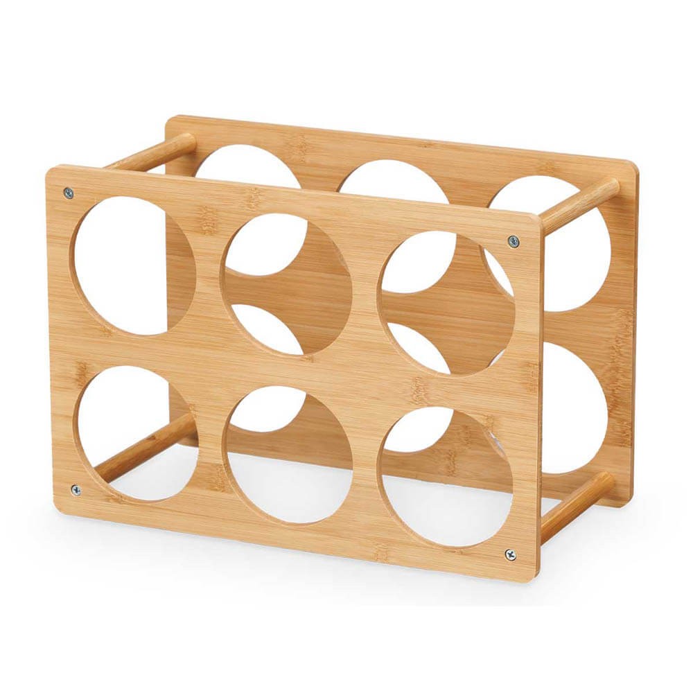 Este botellero de bambú es perfecto tanto para almacenar tus botellas favoritas como para exhibirlas de forma atractiva. Aporta un toque natural y moderno a tu hogar, manteniendo las botellas al alcance de la mano, listas para cualquier ocasión especial.