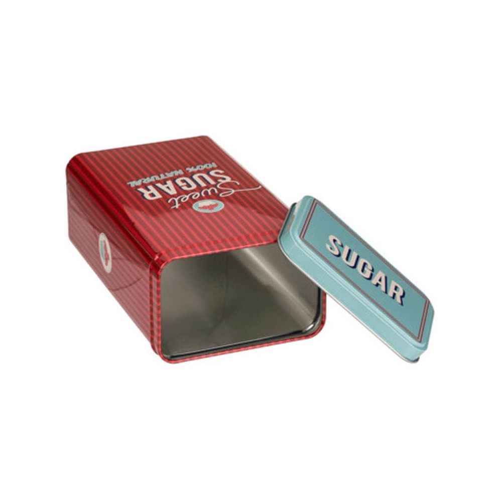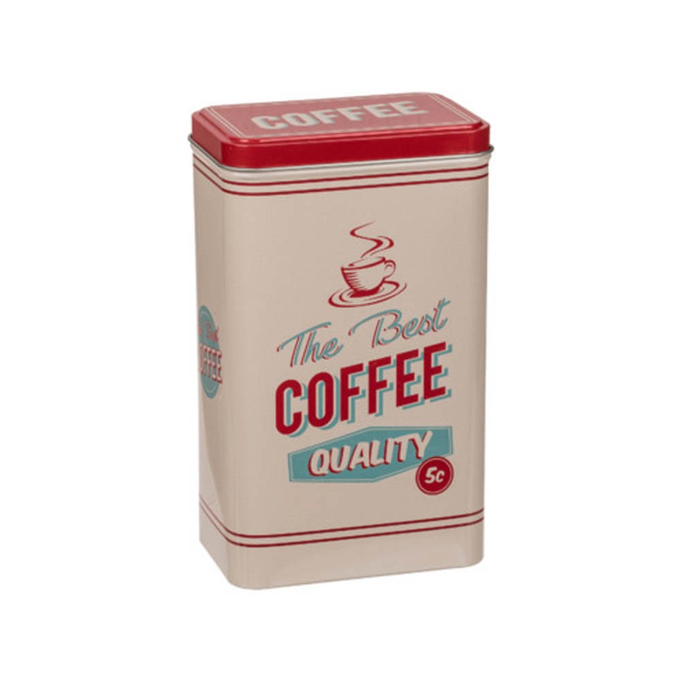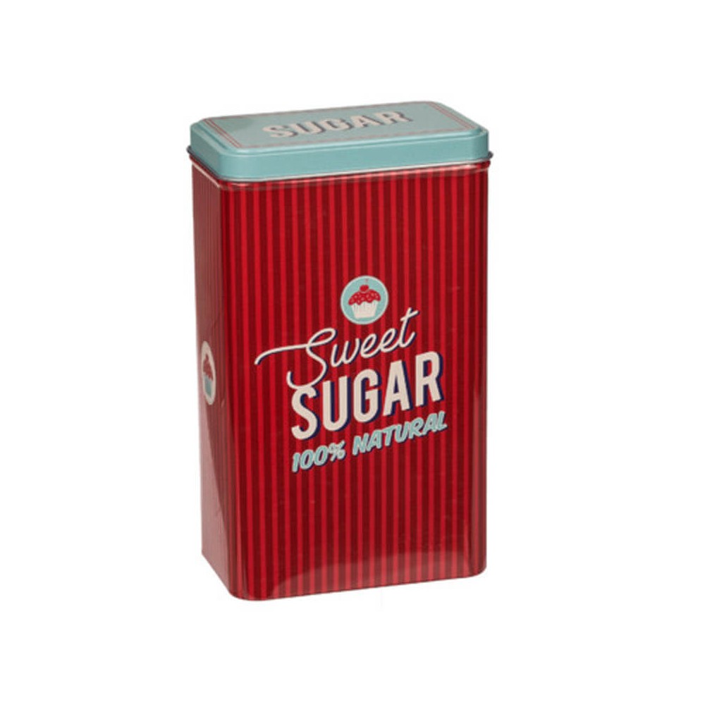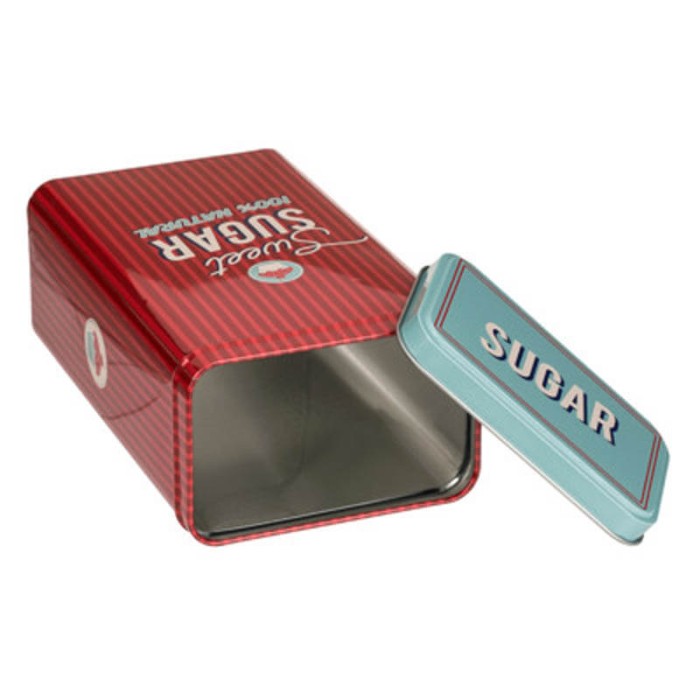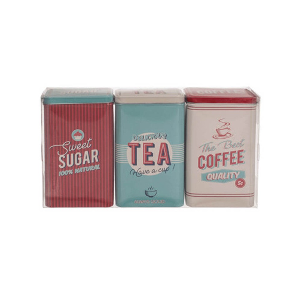 Bote de cocina rectangular en formato vertical con las esquinas redondeadas, fabricado en metal resistente con un atractivo y original diseño de estilo vintage. 3 modelos según disponibilidad, Tea, Suggar o Coffe.