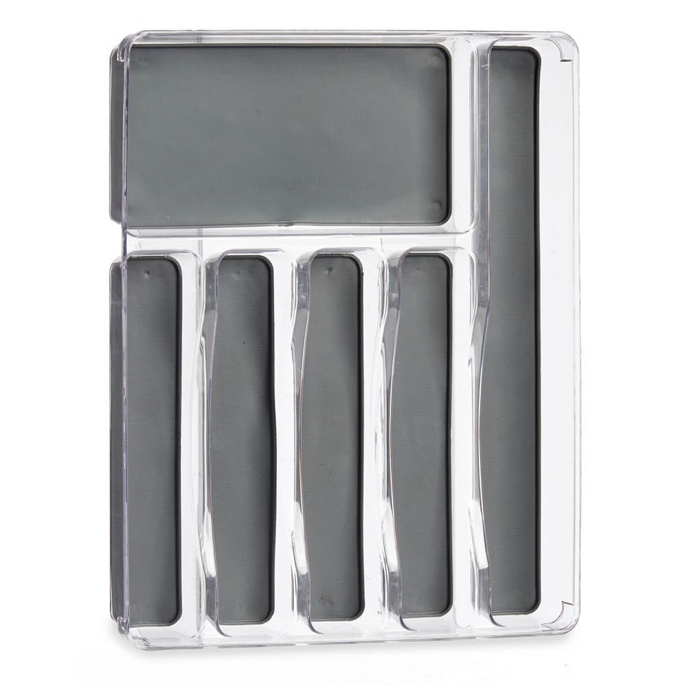 Organizador de cajón de plástico PET reciclado con base antideslizante y 6 compartimentos. Medidas: 40 x 32,3 x 4,5 cm. Ideal para organizar cubiertos y utensilios de cocina.