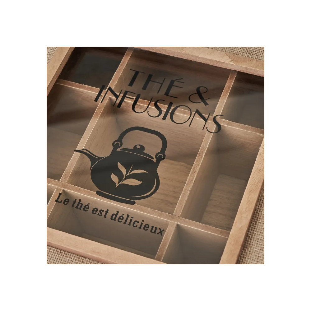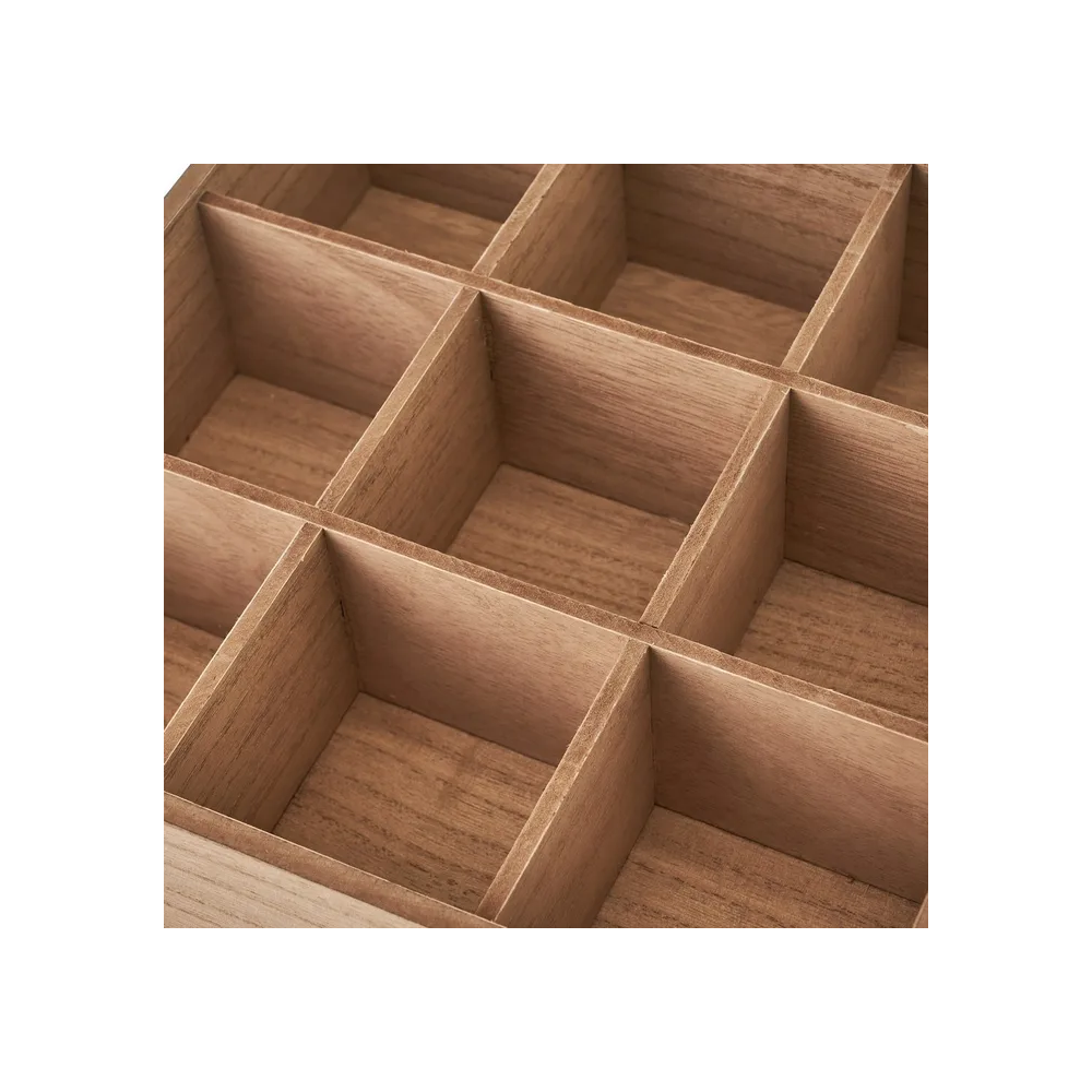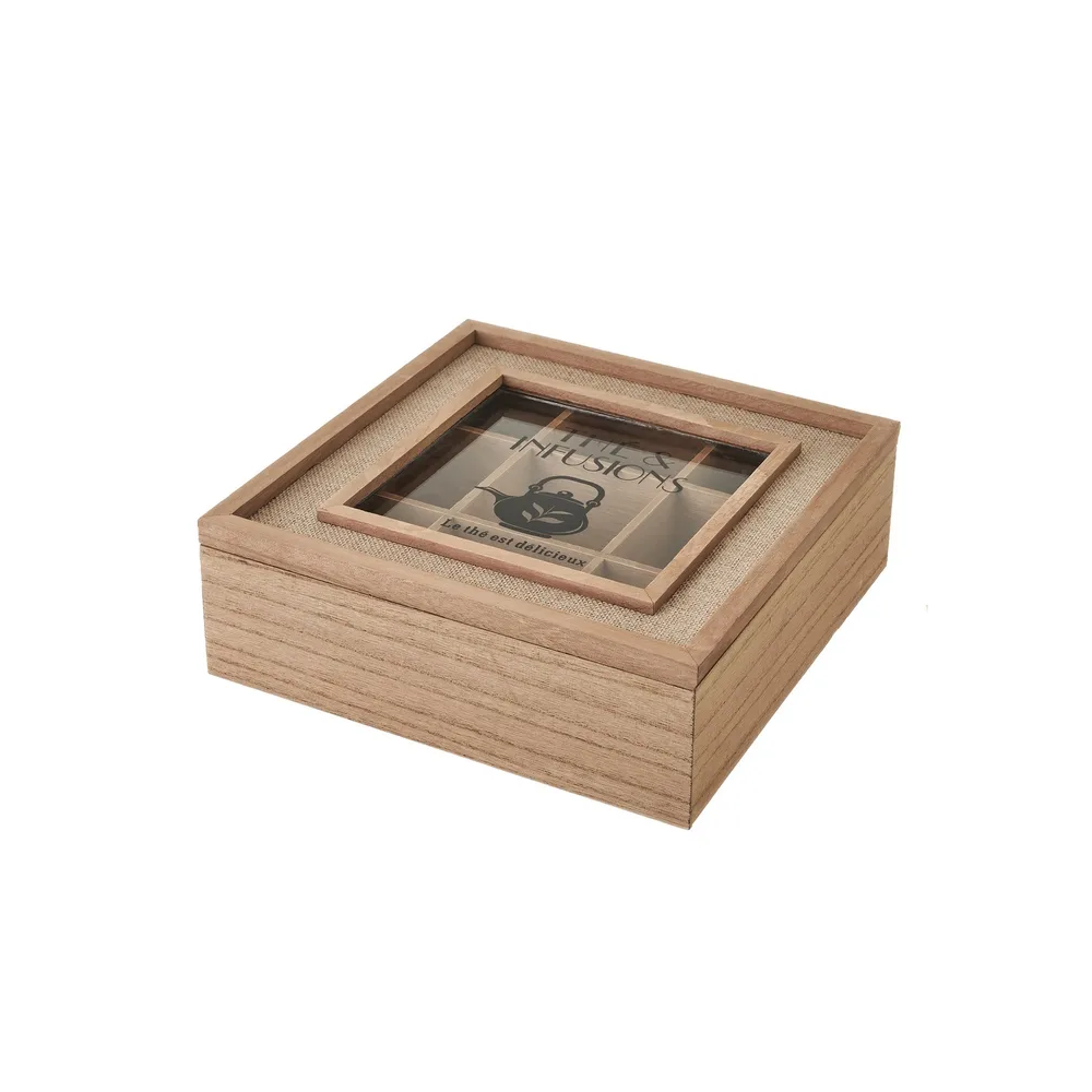 CAJA 9 COMPARTIMENTOS MDF-PINO-CRISTAL 24 X 24 X 8 CM