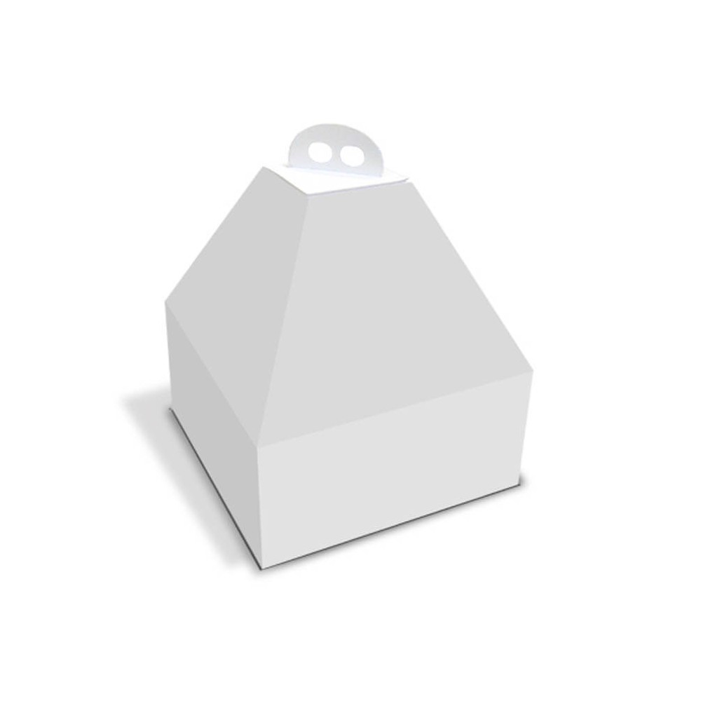 Caja de cartón de 28 cm de altura con asa superior, perfecta para transportar fácilmente y con seguridad tartas y pasteles. La caja para tarta esta realizada en cartón resistente de color blanco.