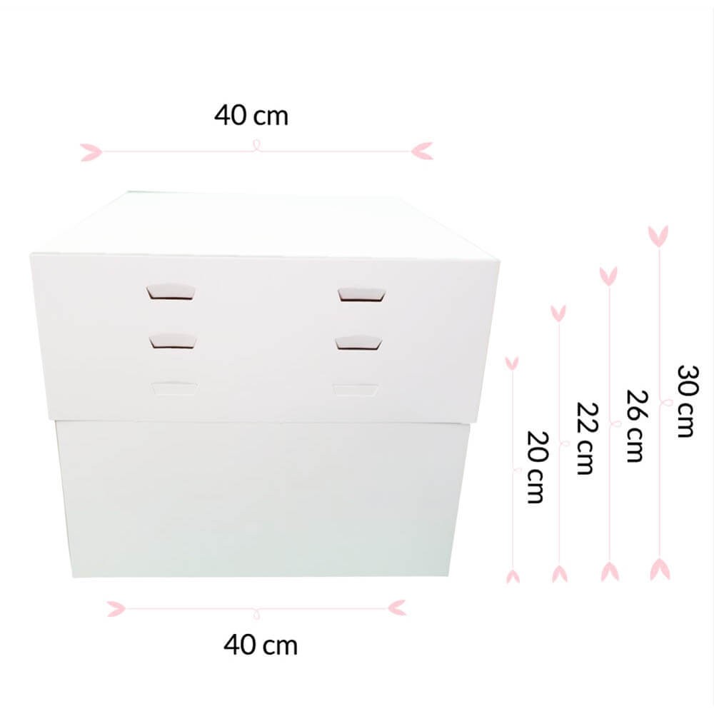 Caja para tarta de 40 cm realizada en cartón resistente de color blanco, fácil de montar.