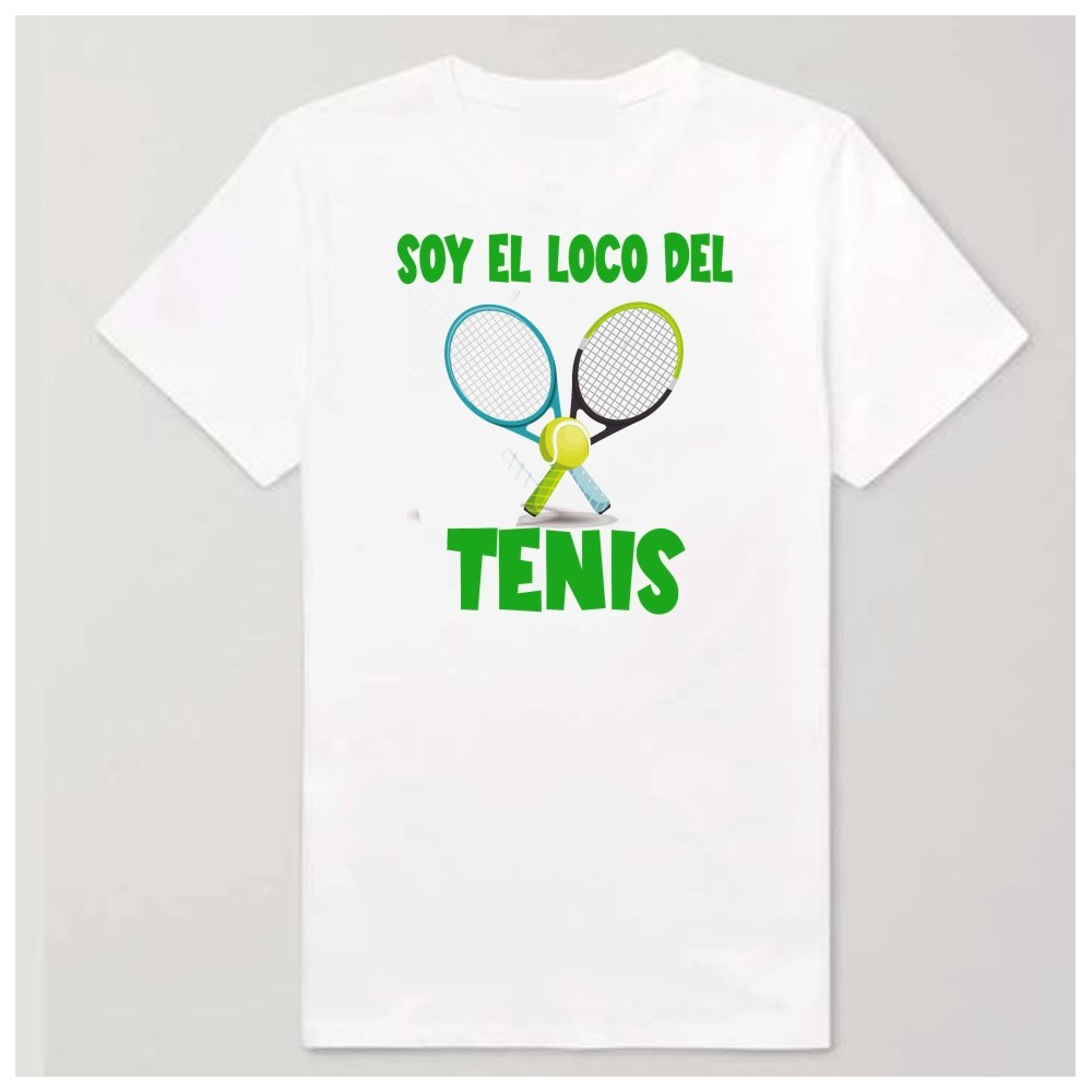 La camiseta presenta un diseño original con dos raquetas de tenis cruzadas y una pelota, transmitiendo la pasión y el amor por este deporte. La frase "Soy el loco del tenis" refleja la intensidad y dedicación que tu ser querido tiene por el juego, mostrando al mundo su devoción por la raqueta y la competencia.