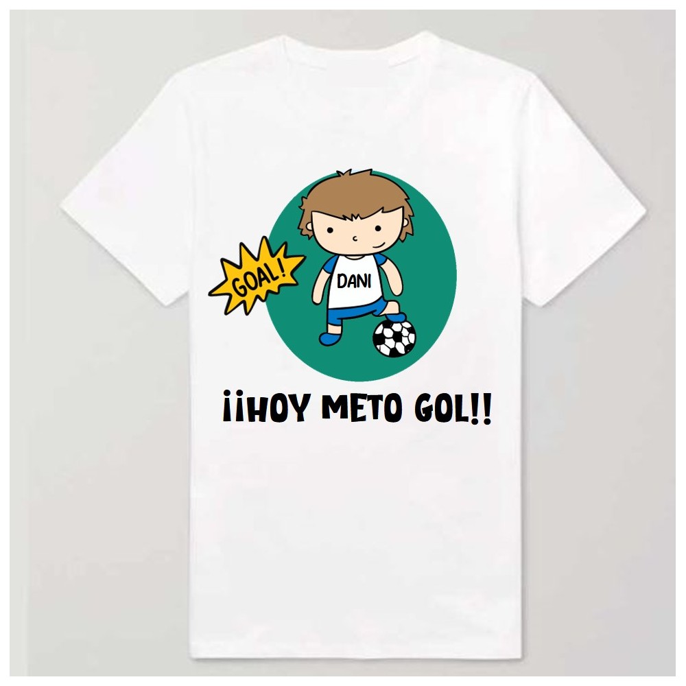 No solo estás adquiriendo una camiseta, sino también una forma de impulsar y apoyar los sueños de tu hijo. Nuestra camiseta personalizada con el dibujo de un niño con una pelota de fútbol y la frase "¡¡Hoy meto gol!!" es el regalo perfecto para cualquier ocasión especial. Sorprende a tu hijo con una prenda que refleje su pasión y lo haga sentir único y especial.