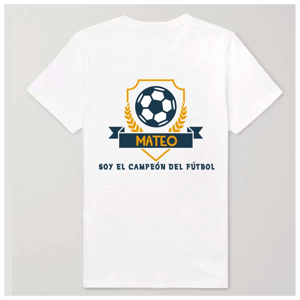 Imagina el brillo en los ojos de tu hijo/a al ver su nombre junto al escudo con un balón en nuestra camiseta. Con la frase "Soy el campeón del fútbol", esta prenda no solo es un símbolo de su pasión por el deporte, sino también una forma de celebrar sus logros y motivarla a alcanzar nuevas metas.