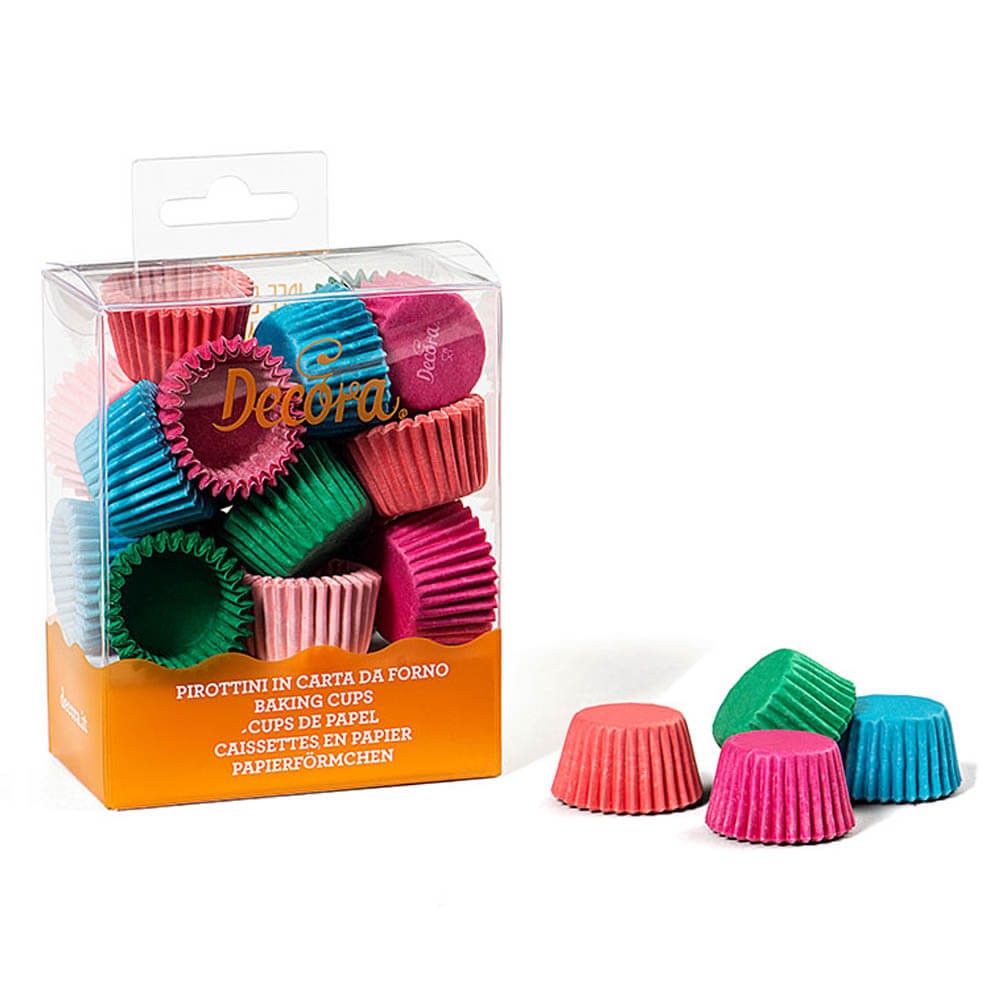 Si quieres hornear mini cupcakes o presentar unos bombones necesitas estas cápsulas de papel de la marca Decora en colores surtidos, verde, azul, rosa y rojo, resistentes hasta 220º.